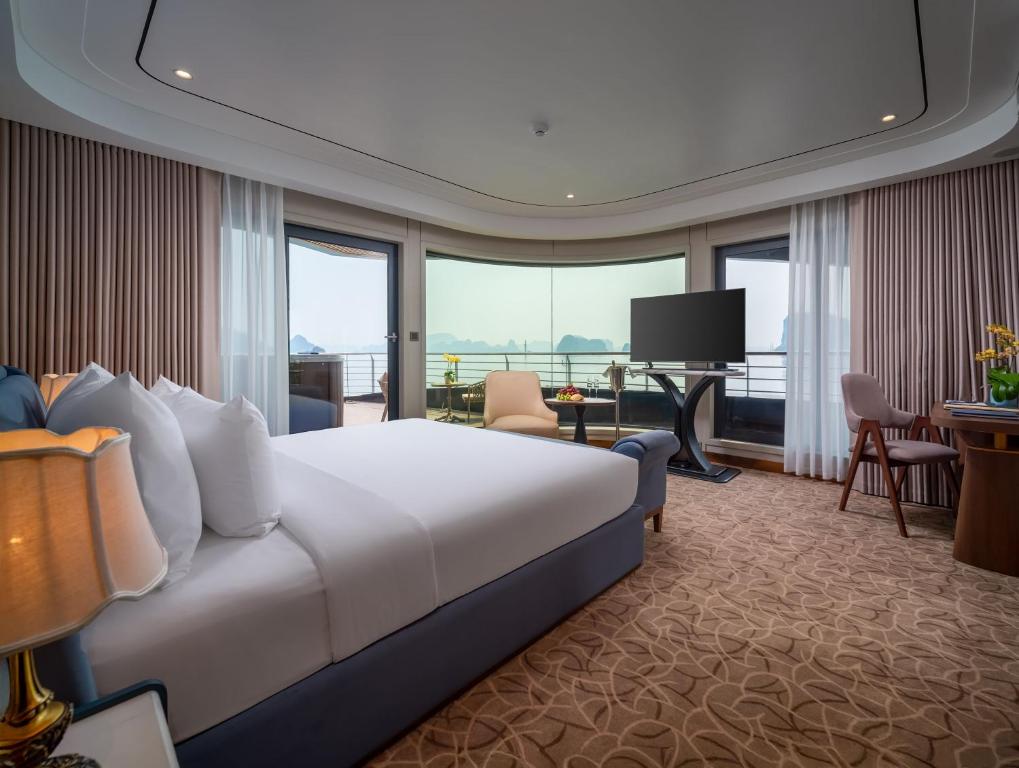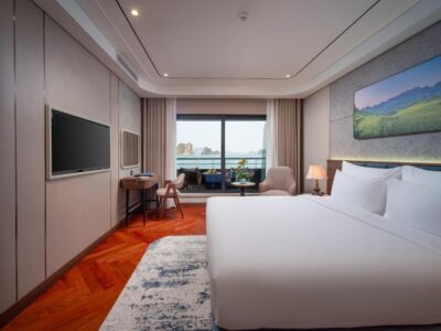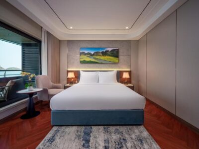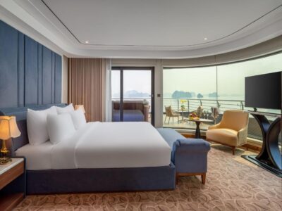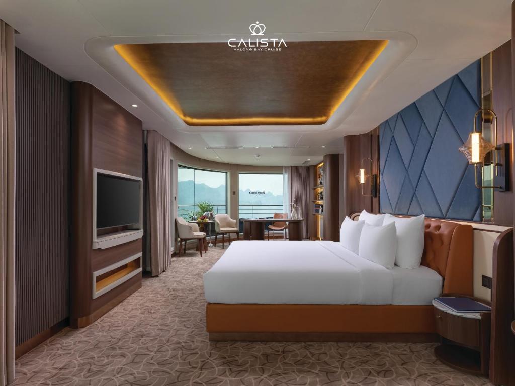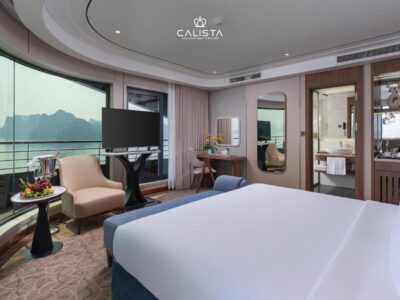 Calista Cruises Halong Bay 6-Star 2026 features over 35 spacious cabins and suites, all with private balconies and panoramic ocean views.
