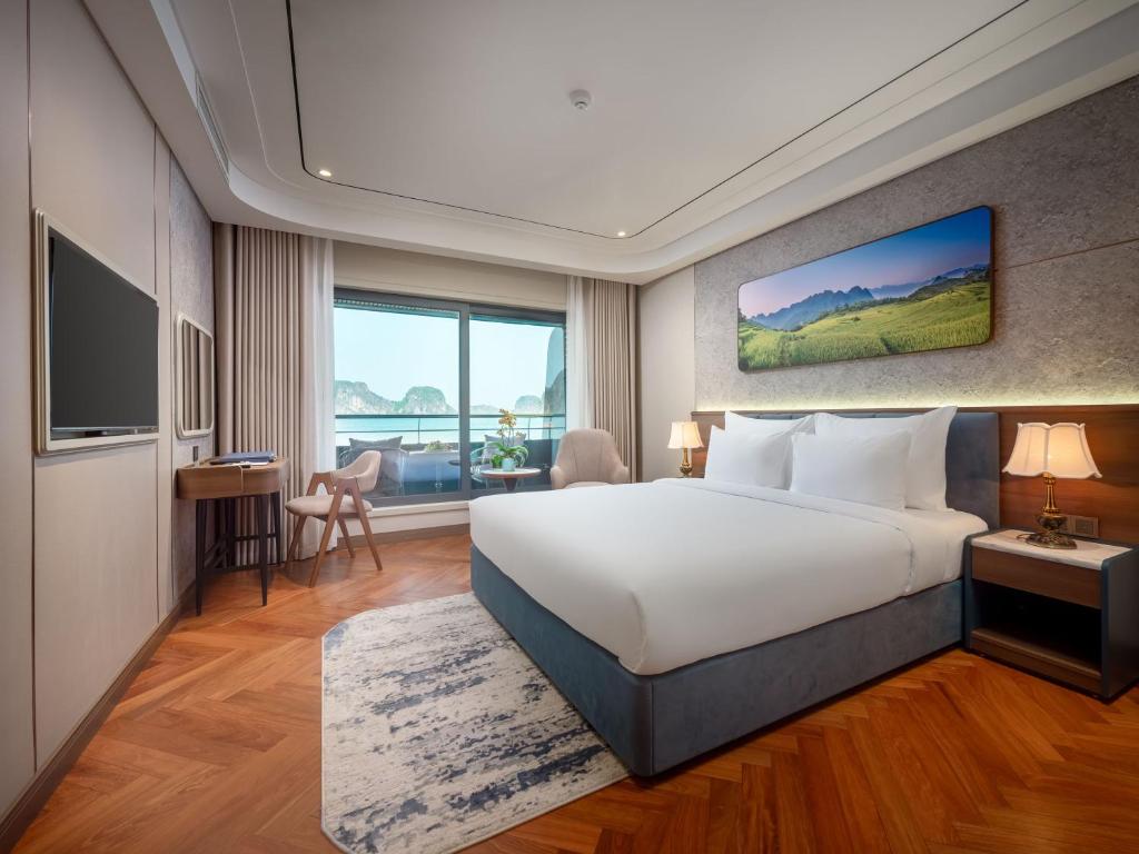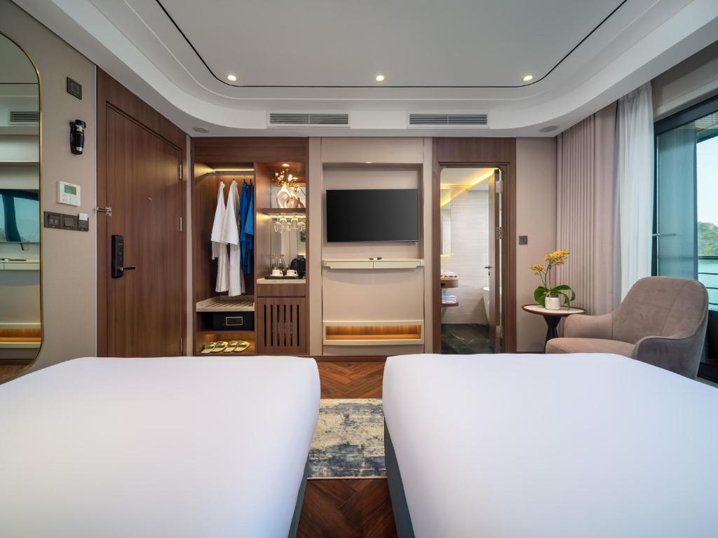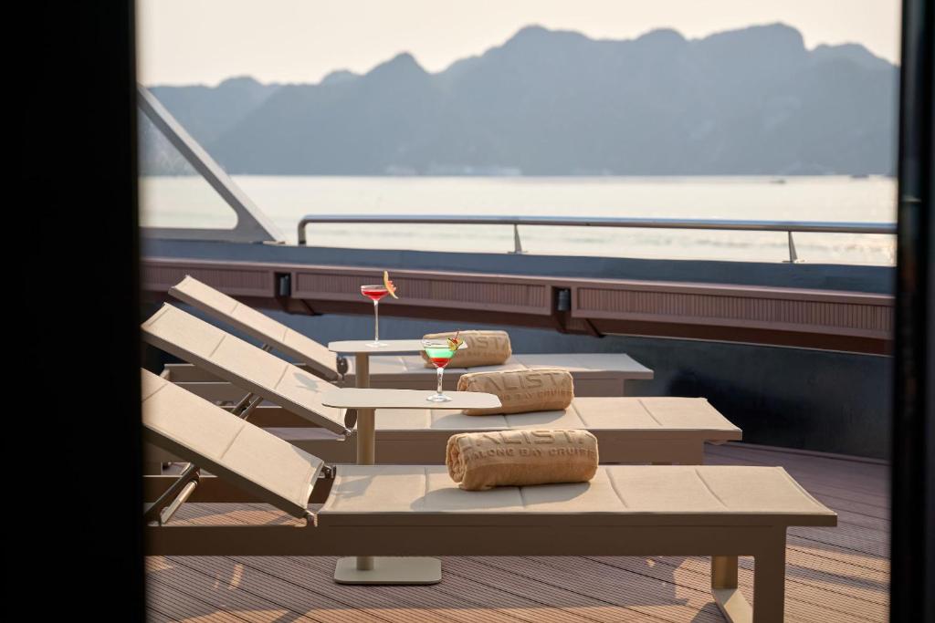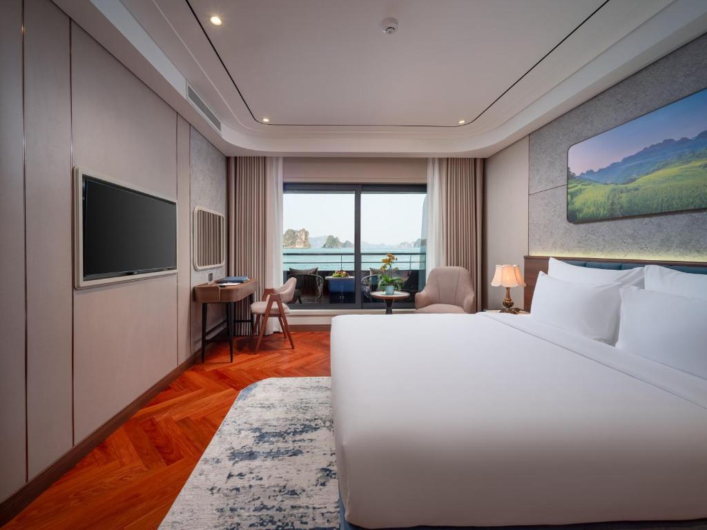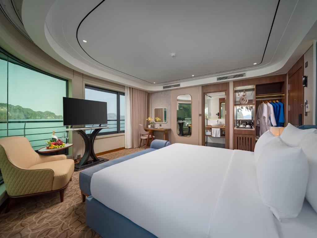 | Calista Bay | ≈ 32 sqm | First Deck | King-size or twin beds | Private balcony, ocean-view bathtub, luxury bedding, and elegant Vietnamese décor. Slightly larger space and enhanced comfort for a serene bay experience. |