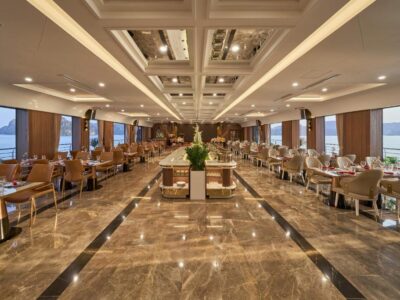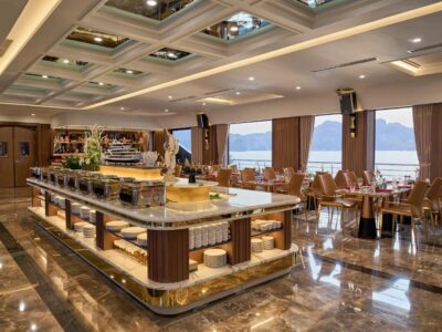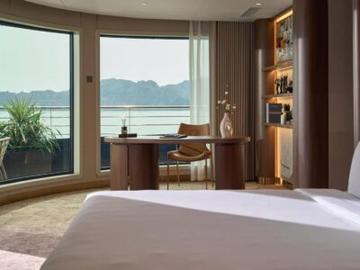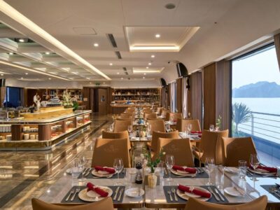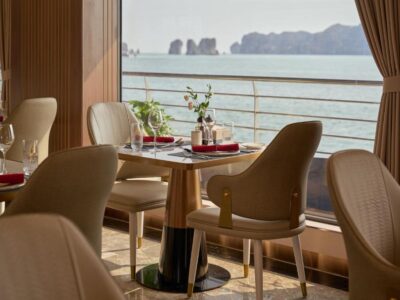 Spread across five elegant decks, the ship offers cutting-edge technology, eco-friendly engines, and luxurious interiors inspired by modern Indochine style.