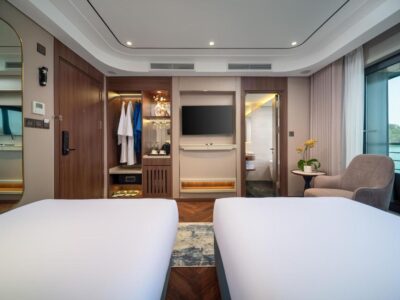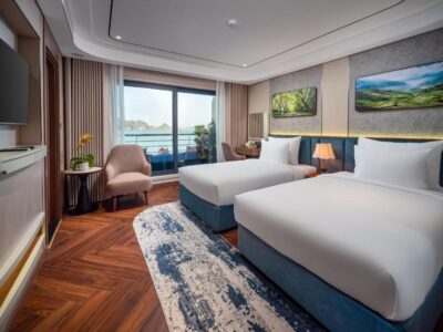 Launched in April 2025, Calista Cruise represents a new standard of luxury in Halong Bay, featuring 38 elegant cabins and suites across multiple decks. Each cabin is thoughtfully designed to blend modern sophistication with Vietnamese charm, offering panoramic bay views, refined amenities, and absolute comfort.
