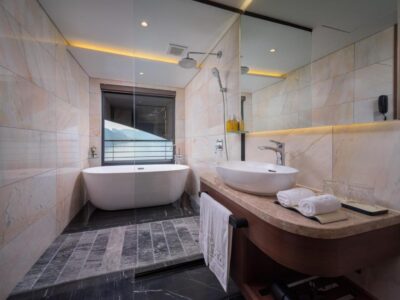 En-suite bathroom with high-end fixtures and premium toiletries